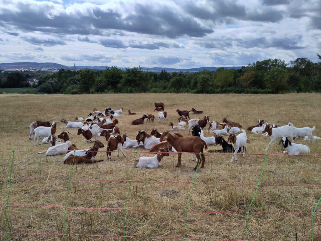 Schafe, Ziegen und Esel haben eine wichtige Aufgabe im Gebiet. Ohne sie würde der offene Bereich binnen weniger Jahre mit Büschen und Bäumen zuwachsen.